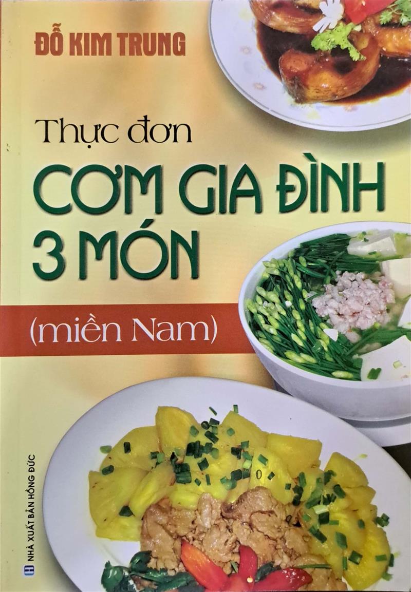 Sách hướng dẫn cách chuẩn bị nguyên liệu và chế biến 10 thực đơn cơm gia đình miền Nam 3 món gồm món mặn, món canh và món xào.