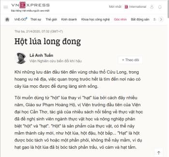 Tôi muốn dùng từ "hột" lúa thay vì "hạt" lúa bởi cách đây nhiều năm, Giáo sư Phạm Hoàng Hộ, vị Viện trưởng đầu tiên của Viện đại học Cần Thơ, tác giả của nhiều sách nổi tiếng về thực vật học đã đề nghị sinh viên ngành thực vật học và nông nghiệp phân biệt "hột" và "hạt". "Hột" là sản phẩm của thực vật, có thể nảy mầm thành cây mới, như hột lúa, hột đậu, hột bắp... "Hạt" là hột được bóc tách vỏ hoặc một phần phôi, không thể nảy mầm, ví dụ hạt gạo là hột lúa đã bị bóc tách phần trấu, vỏ cám và hạt tấm.